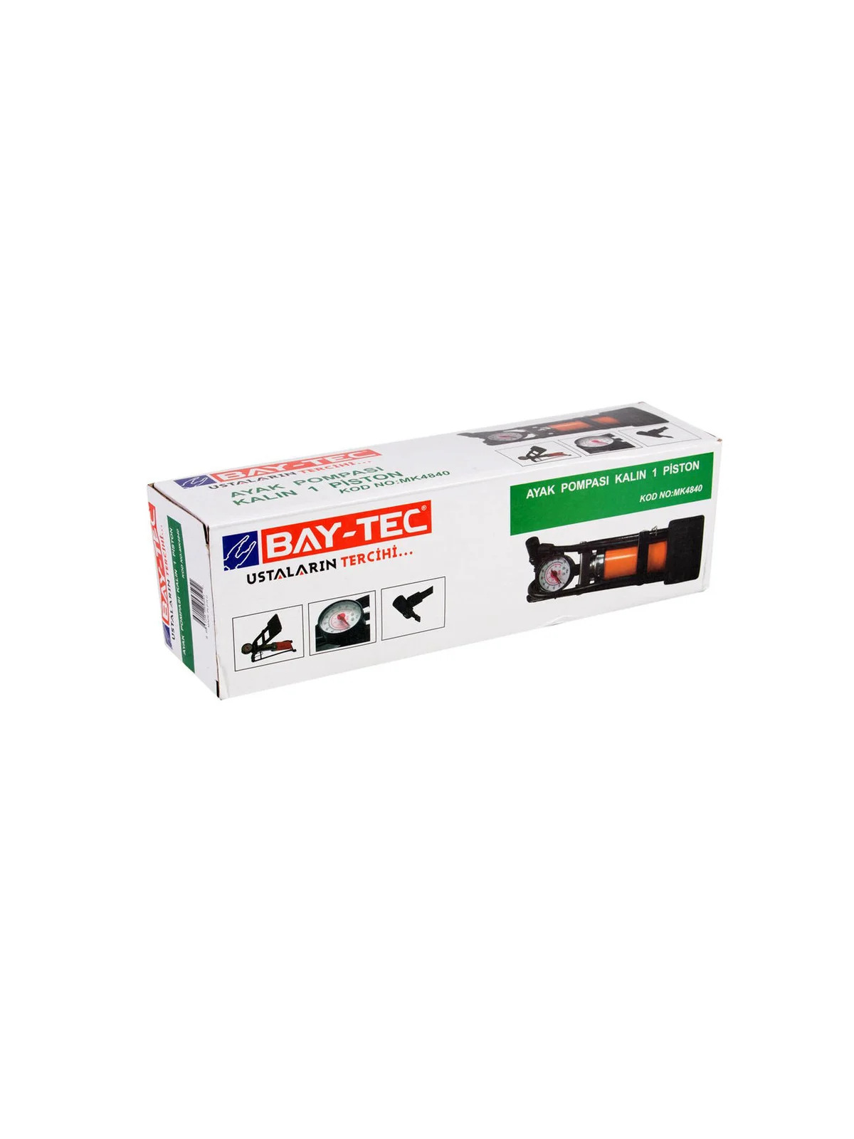 Ayak Pompası Kalın 1 Piston MK4840Kalın pistonludur.Lastik, top vb. havalı ürünlerin şişirilmesinde kullanılır.Üzerindeki saat yardımıyla hava basıncını ölçebilirsiniz.Ayak gücü ile çalışarak hava üretir.Hava basınç göstergeli.