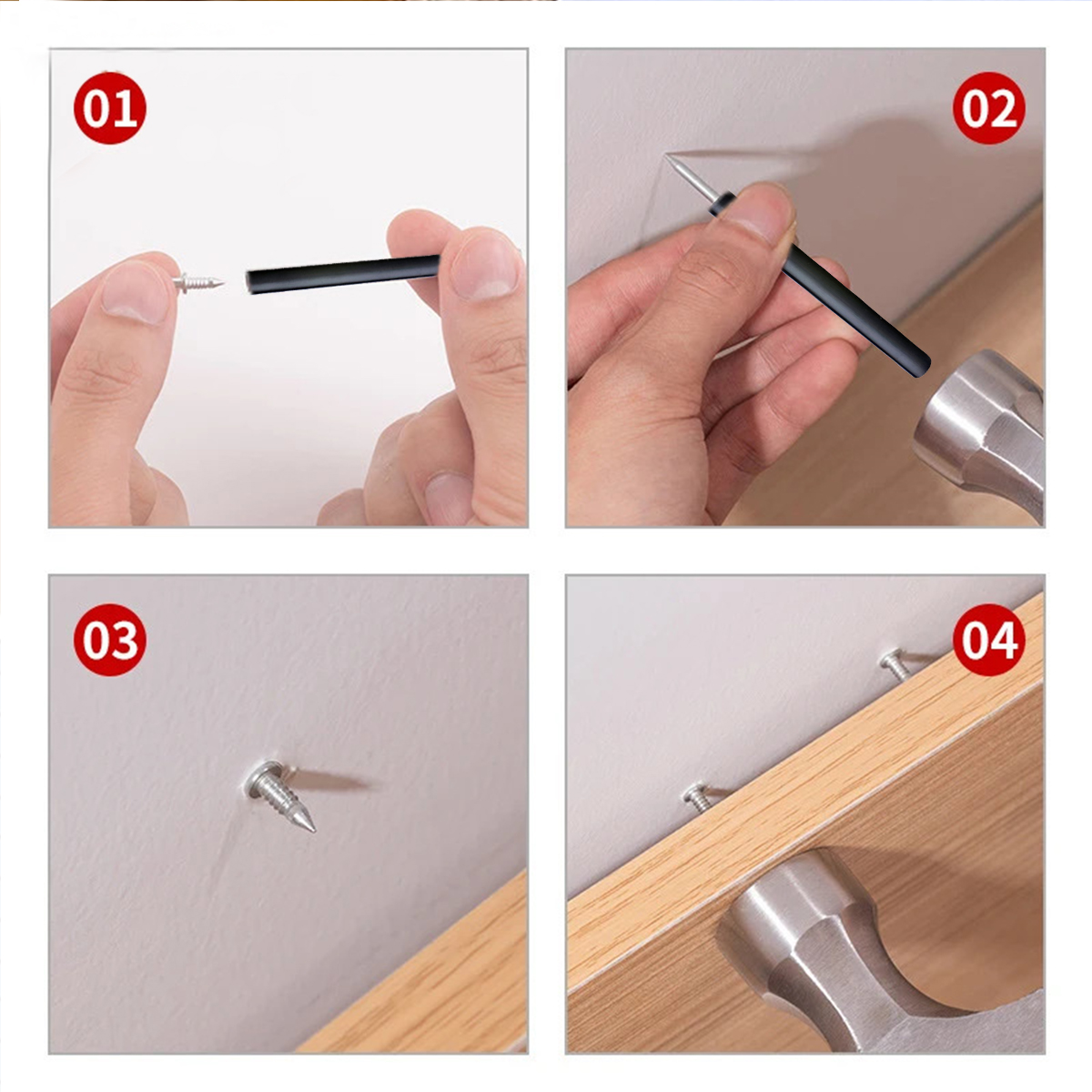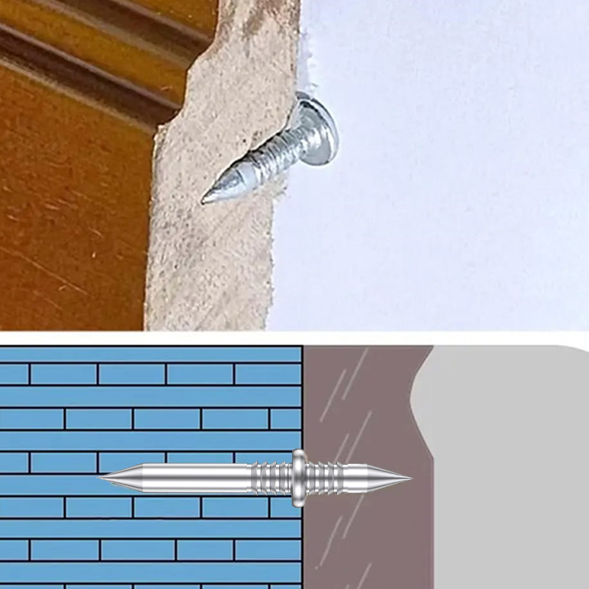 Çift Yönlü Çelik Paslanmaz Pervaz, Süpürgelik, Duvar ve Alçıpan Çivisi (paket içeriği 50 adettir) Çift uçlu tasarımıyla güvenle sabitlemek istediğiniz tüm alanlarda kullanabilirsiniz. Kullandığınız alanlara kolayca nüfuz edebilecek sert ve keskin uçları vardır. Paslanmaz çelikten üretilmiştir dolaysıyla kullandığınız alanlarda düşme yapmaz. Matkaba gerek duymadan tutma aparatı ile çift taraflı çiviyi duvara sabitledikten sonra malzemeyi üzerine yerleştirip çekiç yardımıyla çivinin üzerine ürünü yerleştirebilirsiniz. Paslanmaya karşı dayanıklıdır ve tekrar kullanılabilir, böylece hasar konusunda endişelenmeden uzun süre kullanabilirsiniz.