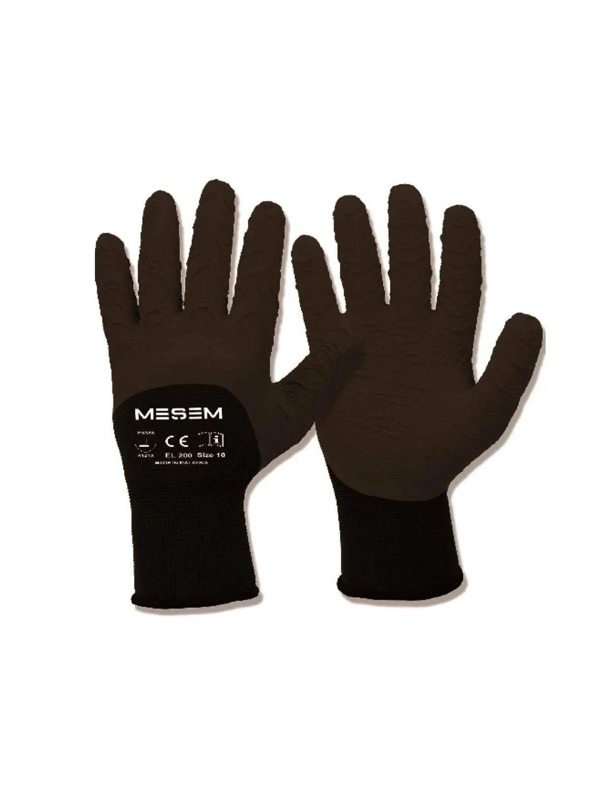 3/4 Pütürlü Lateks Kaplı Siyah Örme Eldiven No:10 MES-EL200