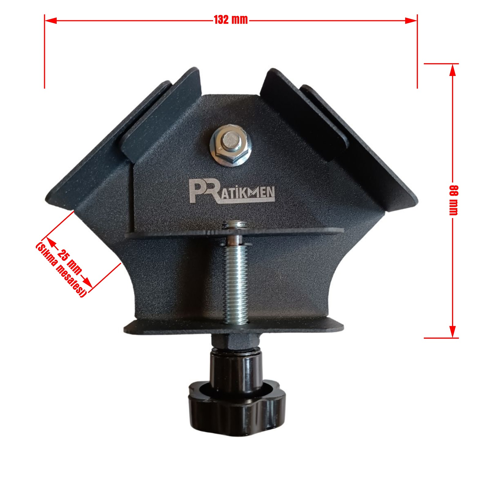 Pratikmen Ayarlanabilir 90 Derece Dolap Montaj Köşe Bağlantı ve Gönye Aparatı güçlü ve sağlam sertleştirilmiş malzemeden üretilmiştir. Raf, dolap veya çerçeve yapımında parçaları 90 derece açıda hızlı ve kolay bir şekilde sabitlemek, tutkal uygulamaları, kaynak işlemleri, mühendislik işlemleri, maket montajı, delmek, dübellemek, kurmak için tasarlanmıştır. 0’dan 25 mm’ ye kadar parçayı çok kolay bir şekilde sabitleyebilirsiniz. Ayarlanabilir çene tasarımı sayesinde hızlı ve hassas bir şekilde iki parça ahşap, metal cam veya her türlü malzemeyi 90 derece kolayca birleştirebilirsiniz. Dolap ve mobilya bağlantıları, demir çerçeve kaynağı, ahşap ürünlerde köşe sabitleme gibi birçok alanda güvenle kullanabilirsiniz. Ürün uzun ömürlü kullanım sağlar ve paslanmaya karşı dayanıklıdır. Güvenirliliği yanında ürün hafif ve taşıması kolaydır.