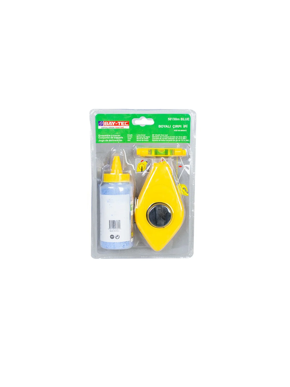 - 30 Metre uzunluğunda çırpı ipi- 115 gr renkli toz boya- İpe takılabilen su terazisi ile birlikte