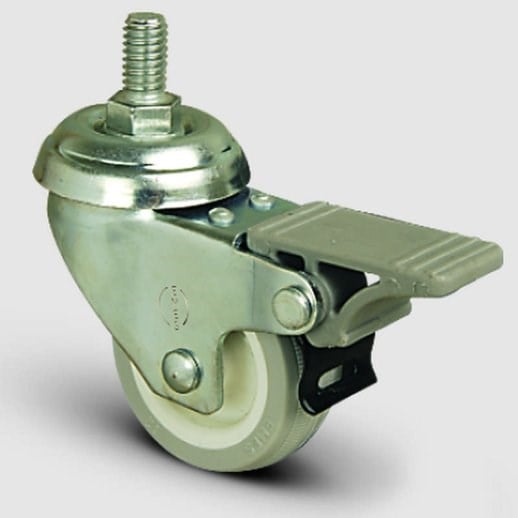 EP05ZKC50F Oynak Civatalı PVC Kaplı Frenli Tekerlek Çap:50 Hafif Sanayi Tekerleği Oynak Vida Bağlantılı Burçlu Poliamid üzeri PVC Kaplı Teker