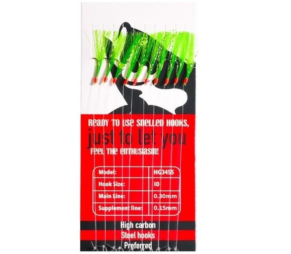 HG3455 Effe Çapari Mackarel 9 Numara 10 İğneli Yeşil Floşlu Parlak Simli