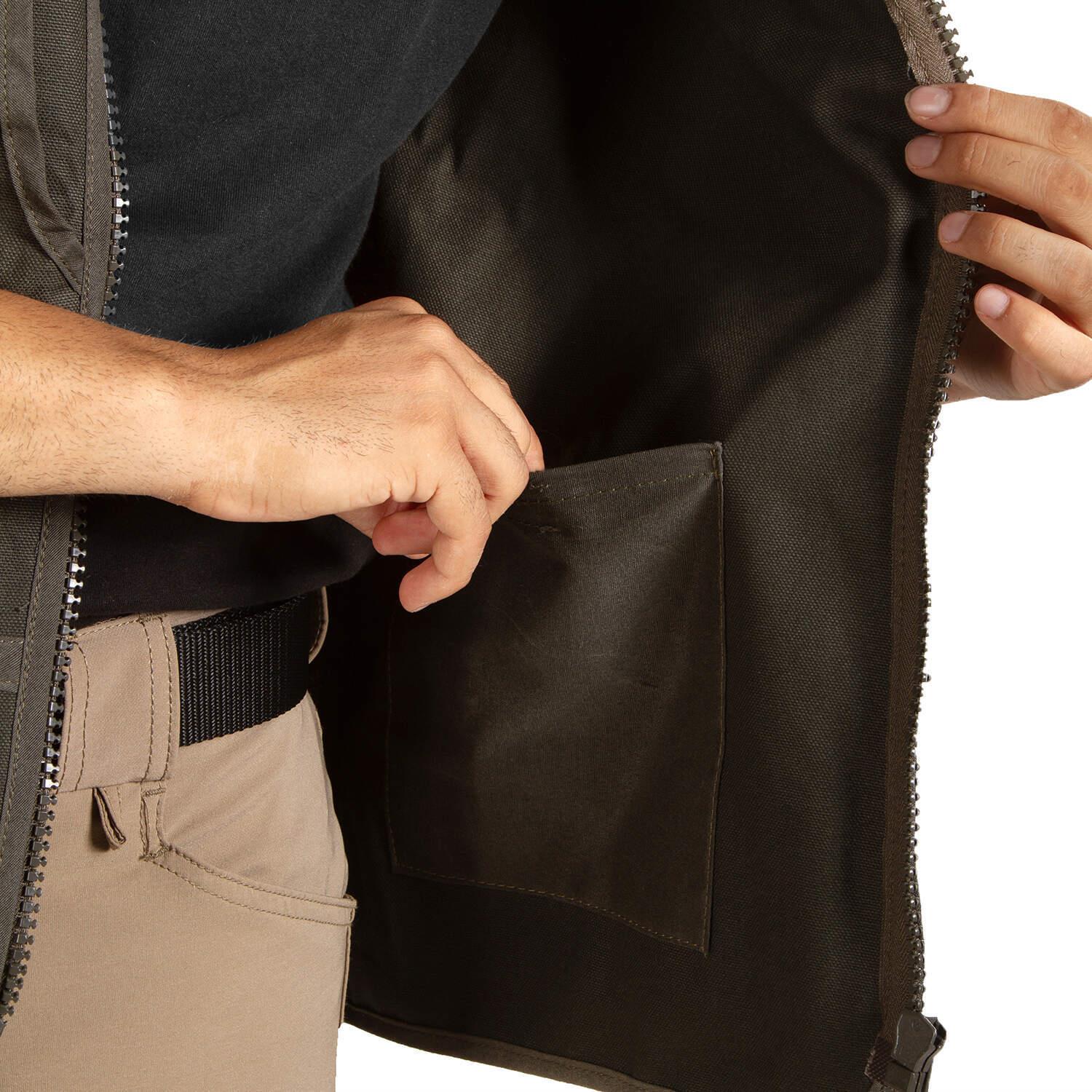 Göğüs kısmında fermuarlı 2 adet evrak, telefon ve kalem cebi