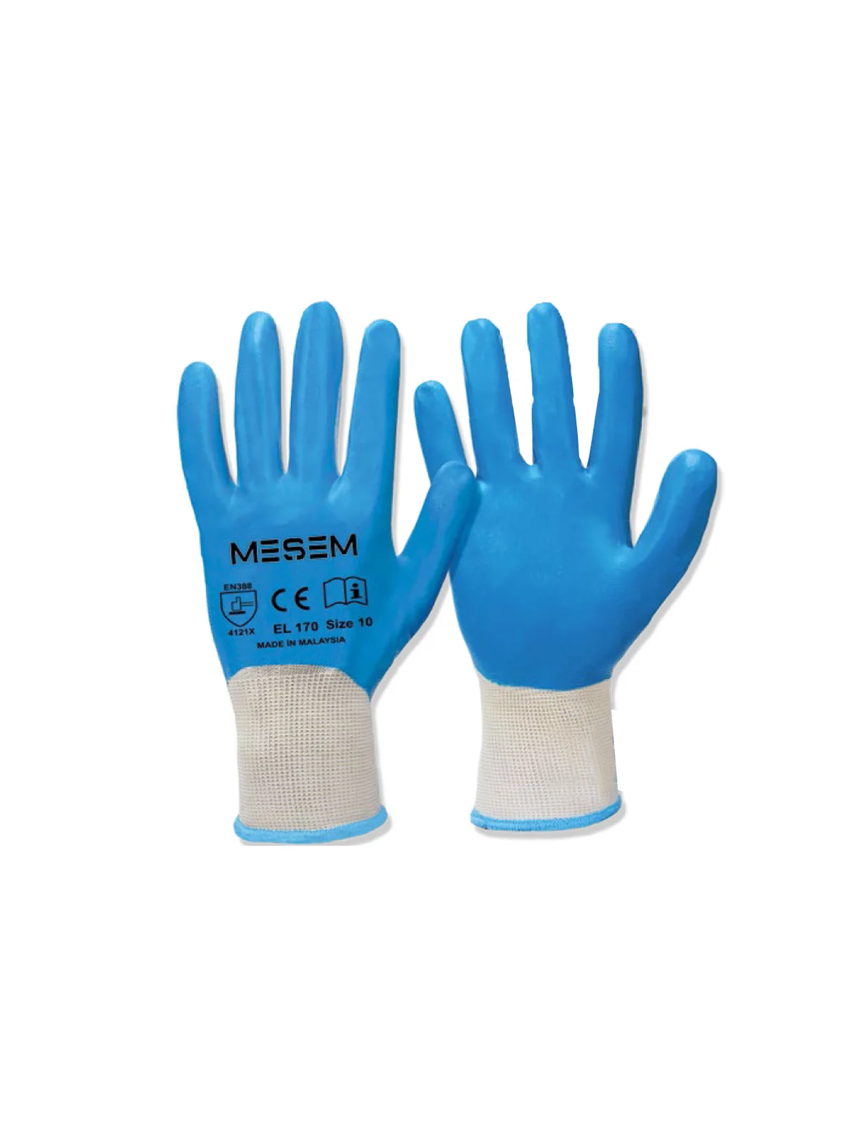 No:10 Mavi Full Nitril Kaplı Orjinal Örme Naylon Eldiven MES EL170