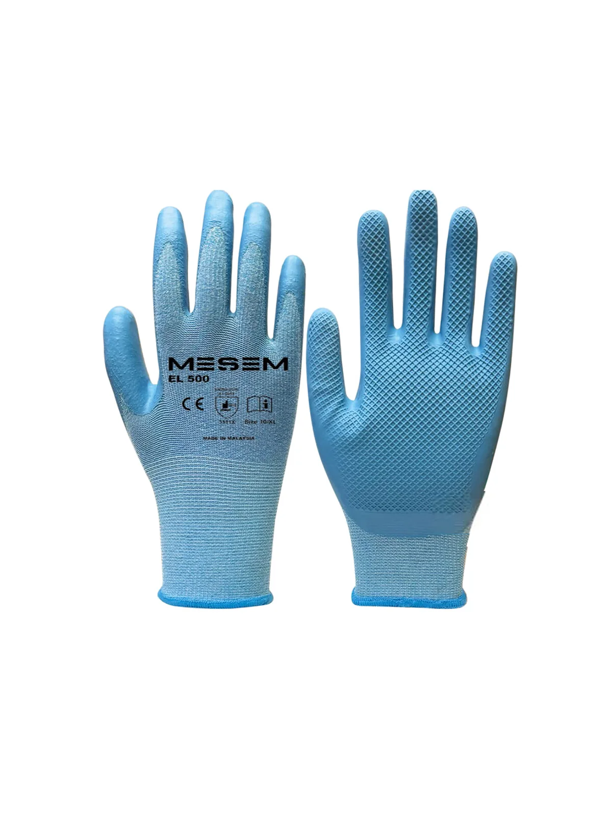 NO:9 Mavi 1/2 Nitril Kaplı Mavi Örme Naylon Komfort Eldiven MES EL501